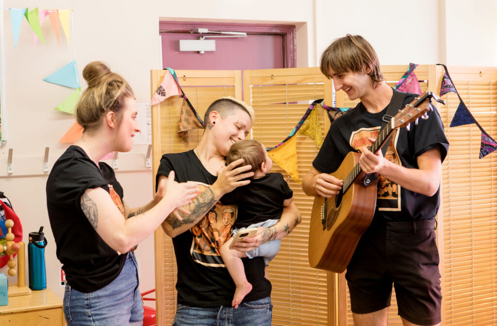 Over an 8-week programme of group and one-to-one sessions, new mothers and fathers are paired with musicians to write a personal lullaby for their baby. The process starts by each parent being gently guided to write a personal letter to their baby or express their hopes for their child. Using this wording and through conversations about music and family life, musicians and parents collaborate to create, record and perform a personalised song for their family. Through this collaborative, creative process, parents grow in self-confidence and form stronger bonds with their child.